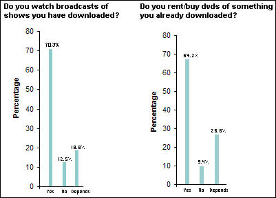 Are people more likely to download television shows than (a) watch broadcast; or (b) wait for DVDs?